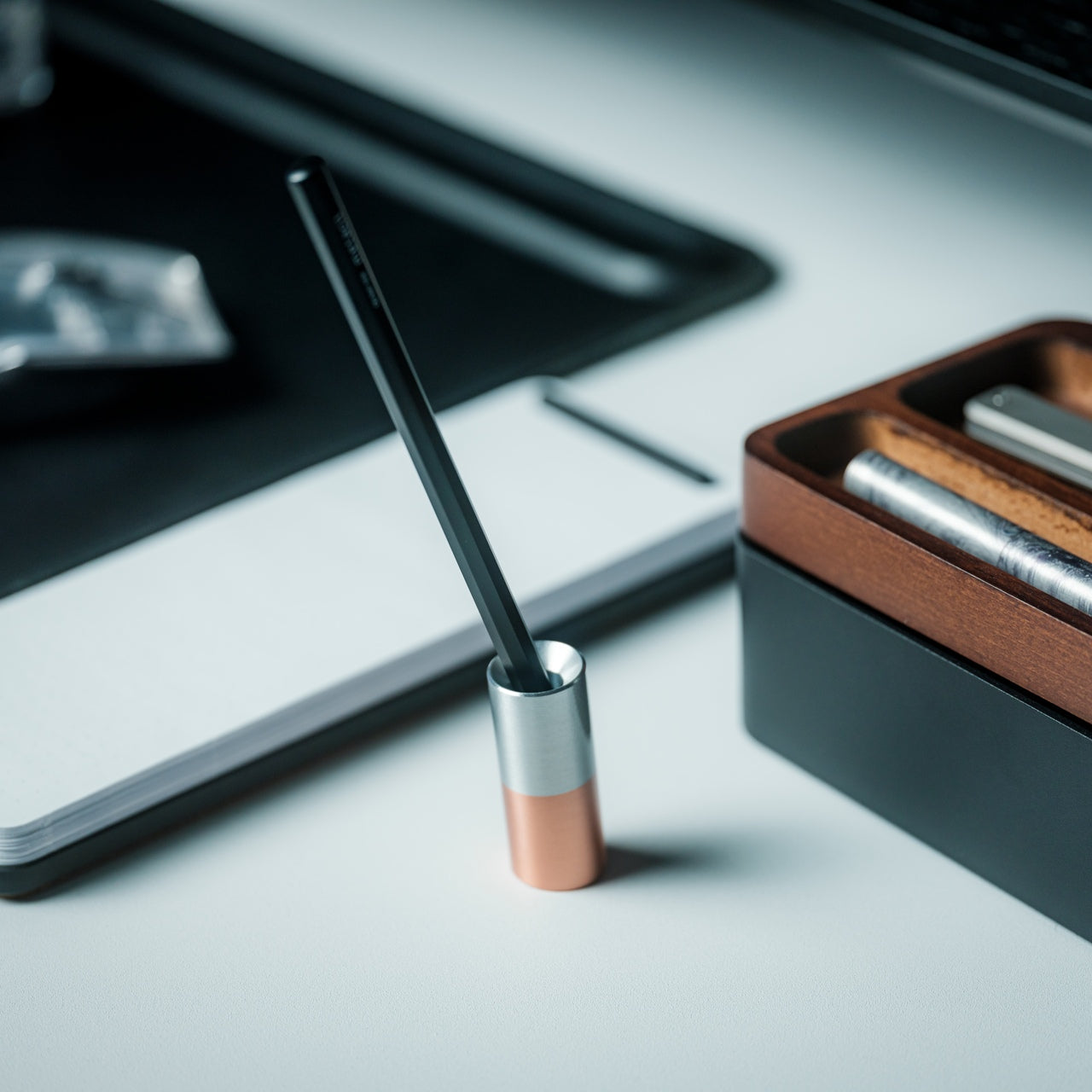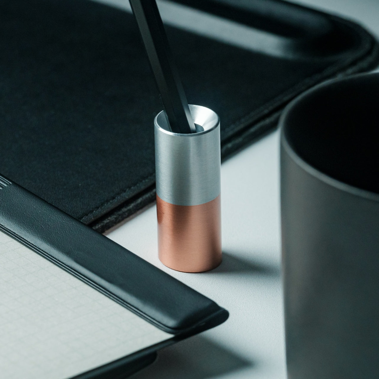 The Serenity Pen Stand is a minimalist’s dream, designed to showcase your favorite pen or pencil elegantly. Its small, unobtrusive design focuses on the pen itself, with a slight tilt for easy access. Made from aluminum and copper, the stand is both sturdy and stylish, adding a decorative touch to your desk.