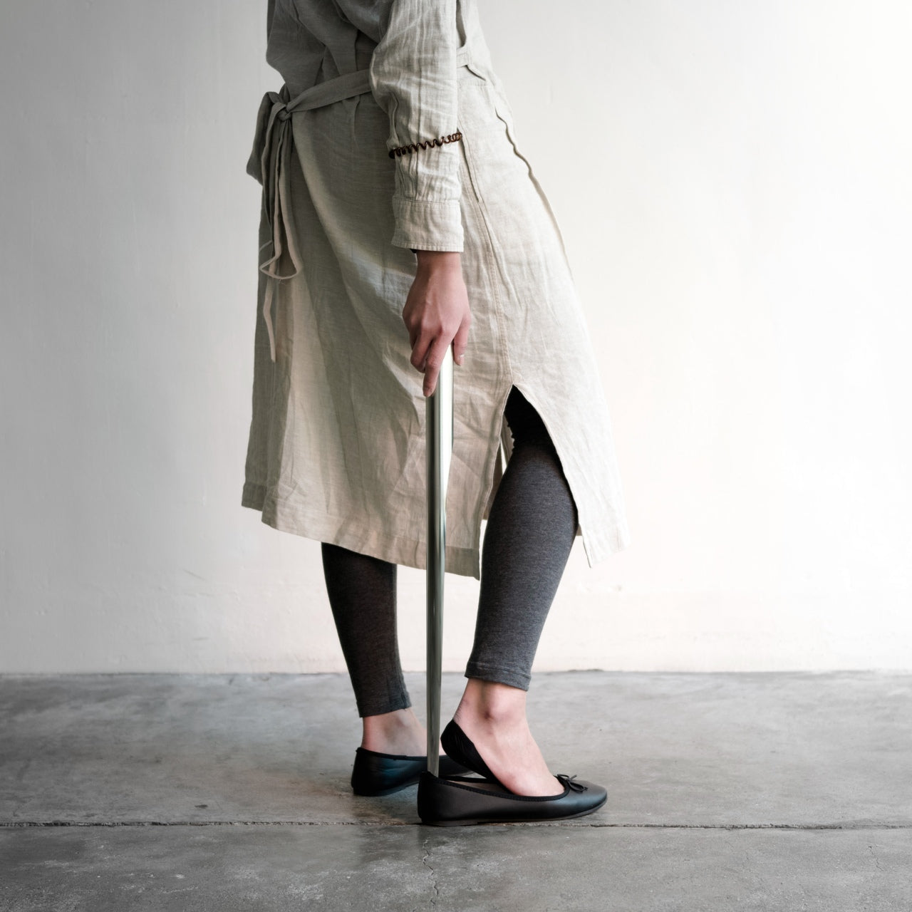 The Invisible Shoehorn redefines the simple act of putting on your shoes with its sleek and sophisticated design. This innovative tool is crafted from high-quality stainless steel, offering a long, sturdy body that makes slipping into your shoes a breeze. No longer will you need to bend down awkwardly or risk straining your lower back in the morning rush. Instead, you can start your day with ease and comfort.