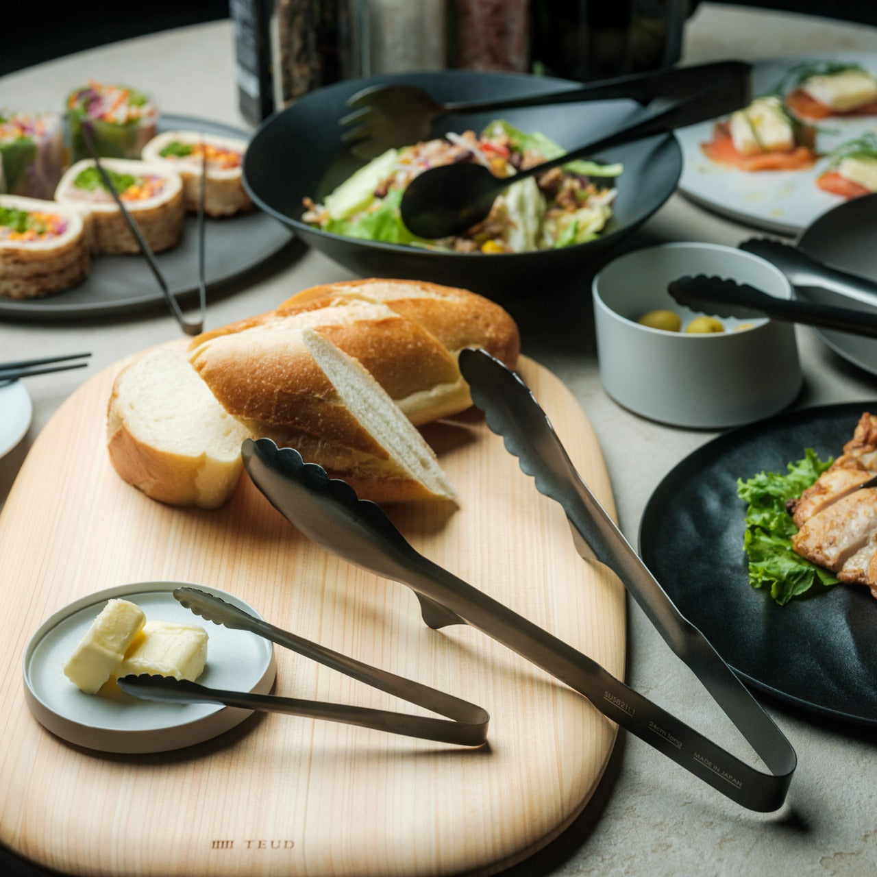 The tongs are inspired by traditional Japanese utensils, they combine the elegance of chopsticks with the practicality of tongs. They’re made from SUS821L1 stainless steel, which is renowned for its strength and corrosion resistance. They’re designed to be used every day and are long-lasting.