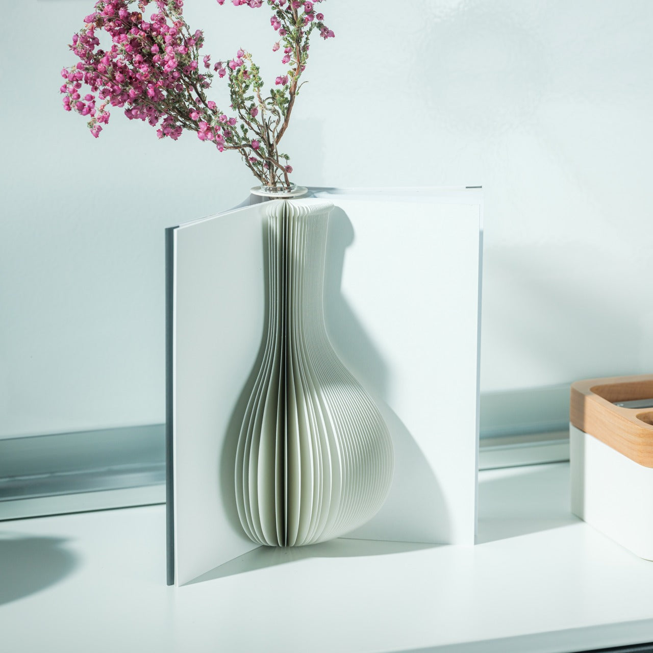 Give your flowers a home worthy of fairy tales with this seemingly magical pop-up book vase. Open the cover to reveal a 3D cutout of a vase to highlight the colorful beauty of your floral arrangement. Flip a page to behold another simple yet graceful vase design, allowing for a fresh presentation now and then.