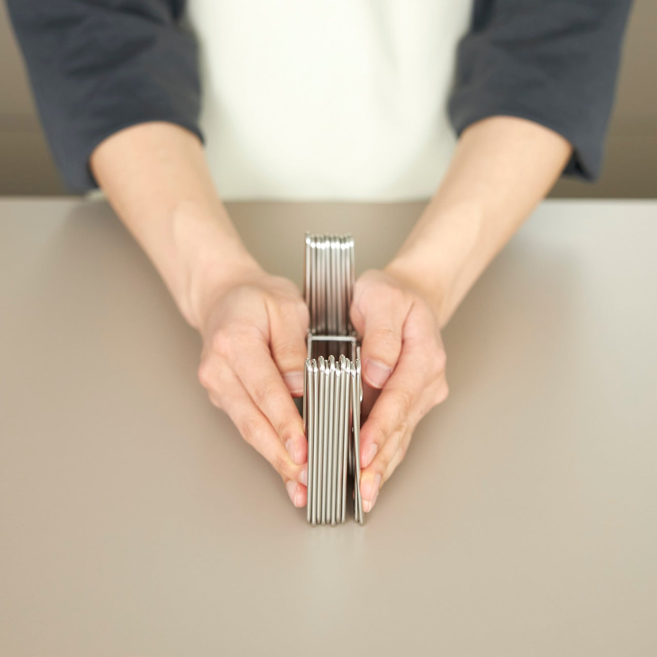 The Slim-Fold Dish Rack is an innovative solution for travelers who need to manage wet dishware while on the go. It features a patent-pending spring mechanism, and it can easily shrink down to just 1.2 inches (3 cm) in a second, with deployment being just as quick. It features a minimalist yet durable design that provides ample ventilation and space for plates, utensils, and cookware of any size.