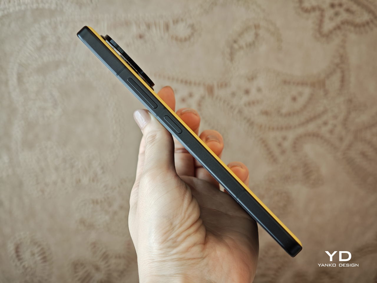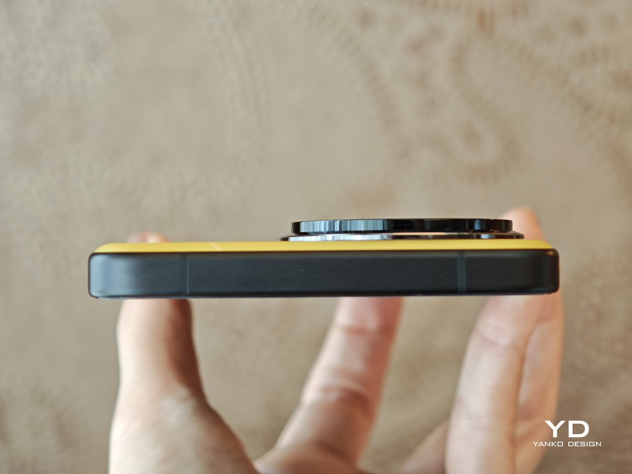 The design of the Poco F7 Ultra takes a step in a new direction compared to its predecessors. It is available in two color variants — Black and Yellow — and we had the opportunity to review the vibrant Yellow version. Both variants feature a matte glass back with a subtle two-tone effect, giving the phone a fresh and premium look. The black variant has a glossy top section, while the Yellow variant boasts an entirely matte finish. The matte surface feels smooth and comfortable in hand, and it does an excellent job of resisting fingerprints and smudges, which is always a plus.